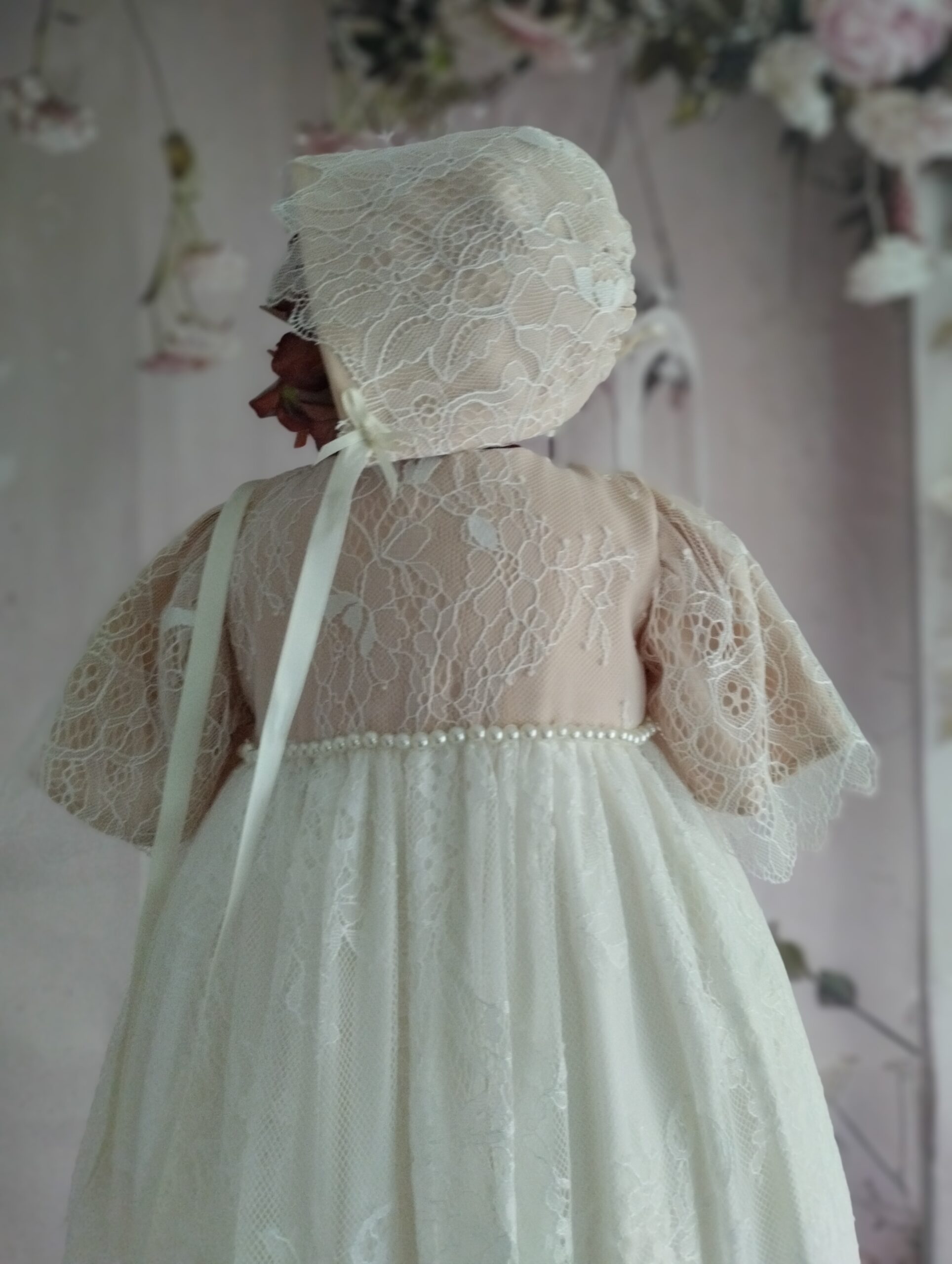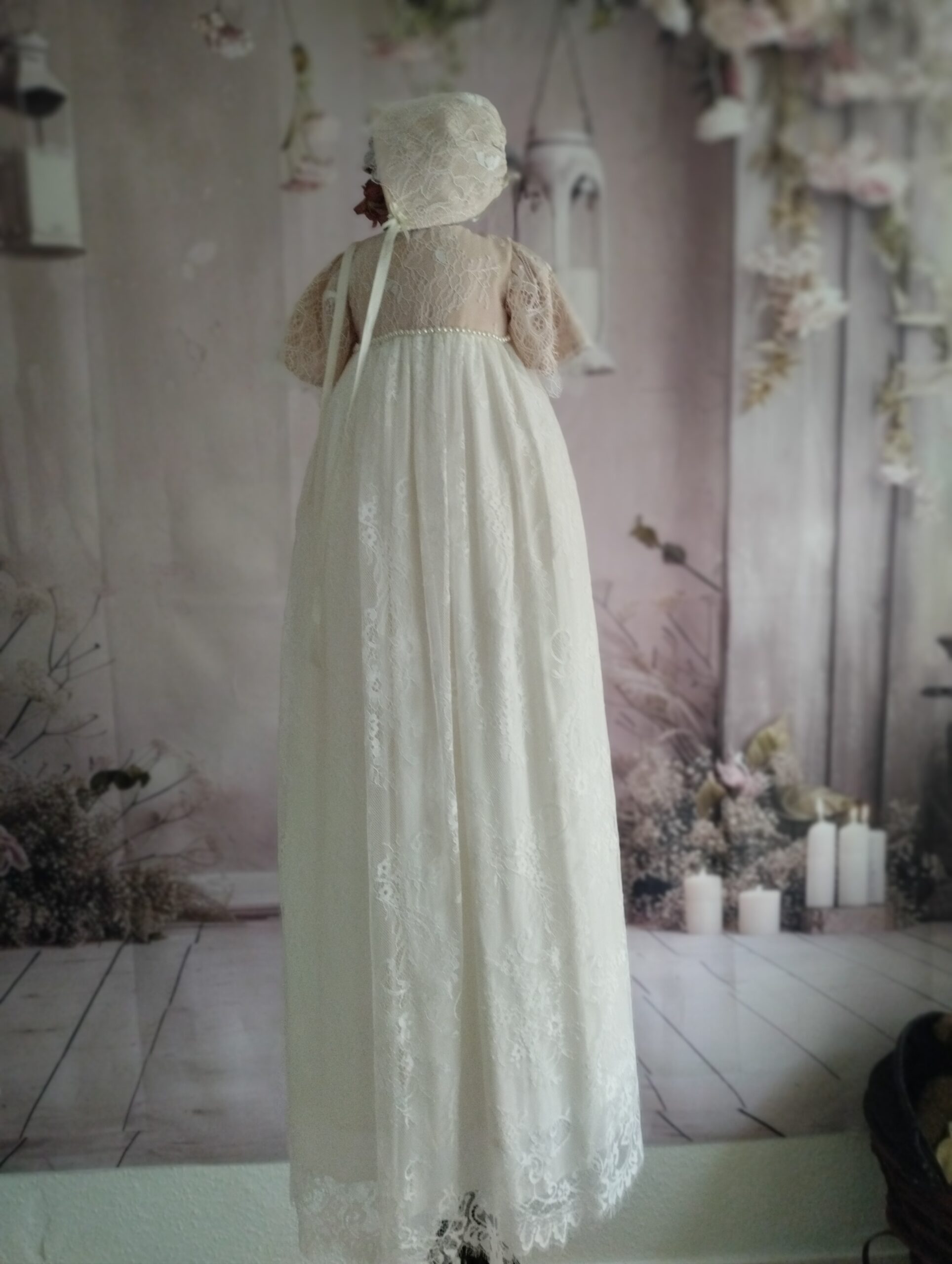 Gratis forsendelse i DKSmuk dåbskjole i blonde. Øverst foret med pudderfarvet, som giver dåbskjolen en strejf af romantik.